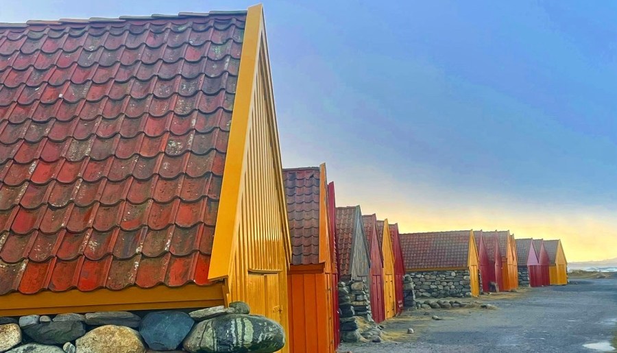 Sjøhusene på Sele er flotte motiv, i all slags vær og vind. Her ble det en fotostopp.
