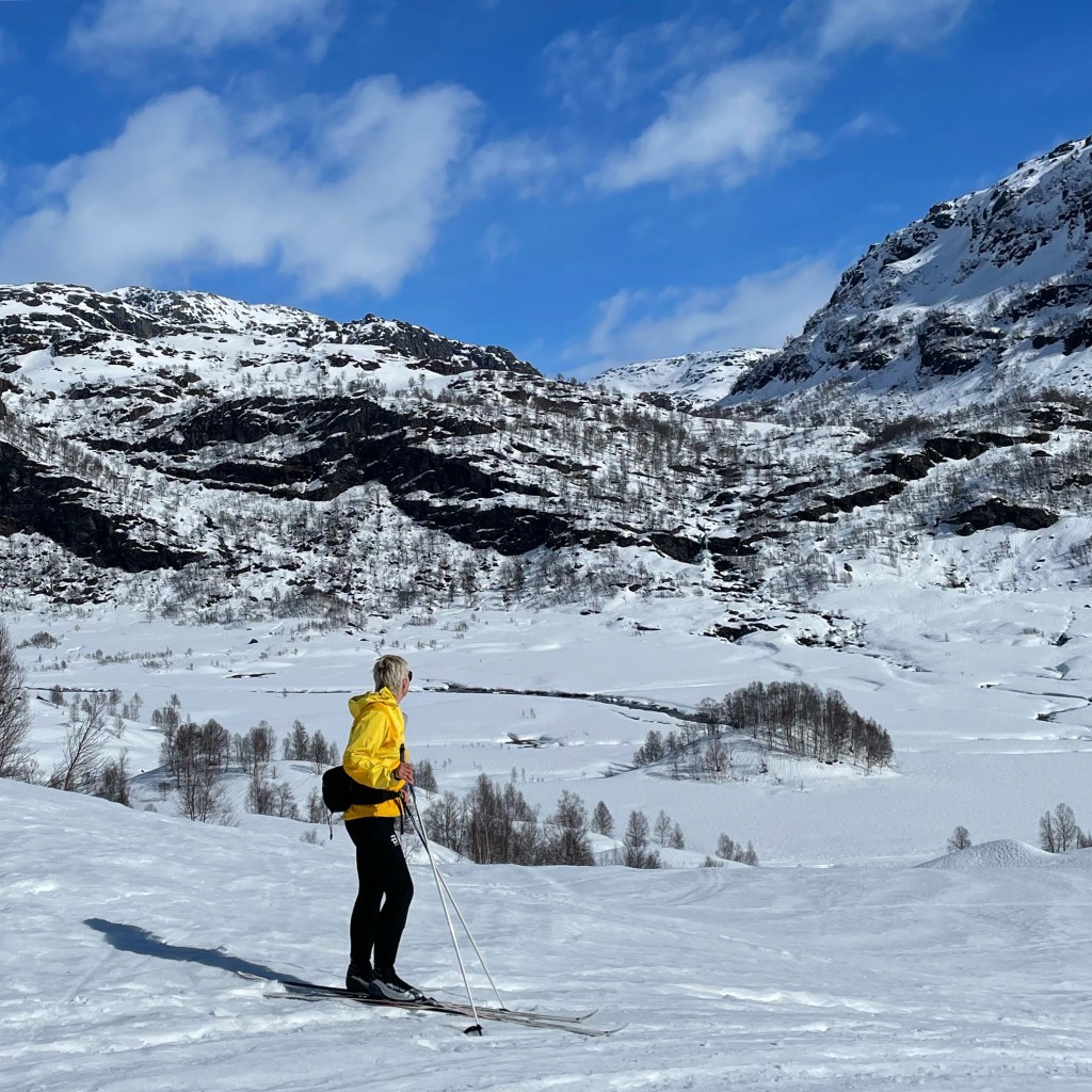 Turen startet fra parkeringsplassen i Jeskedalen. Herifra er det oppkjørte løyper med en del stigning i starten (opp Bakkadalen). Vi gikk opp på vestsiden av dalen til Buer.
