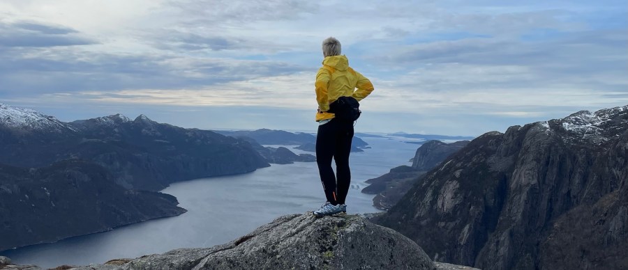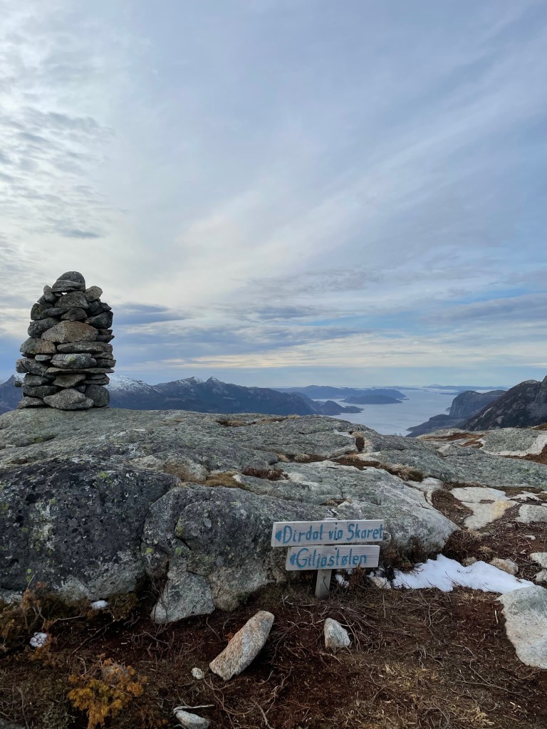 På toppen er det bare å nyte denne formidable utsikten med fjord og fjell på alle kanter.