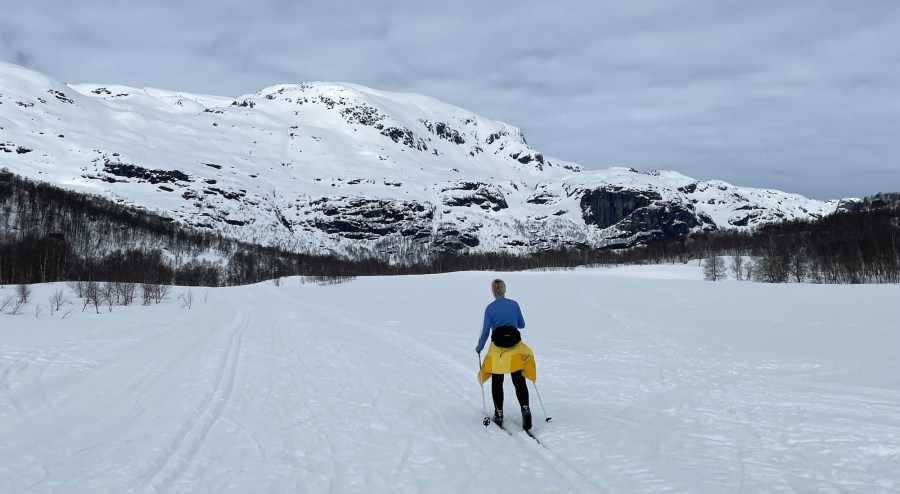 Dette er en lett og fin skitur, jevnt med små bakker opp/ned. Mindre kuppert siste delen fra Indrejordet til Torvøynå, kun en og annen bakke. Et greit alternativ mot å gå rundt vatnet.