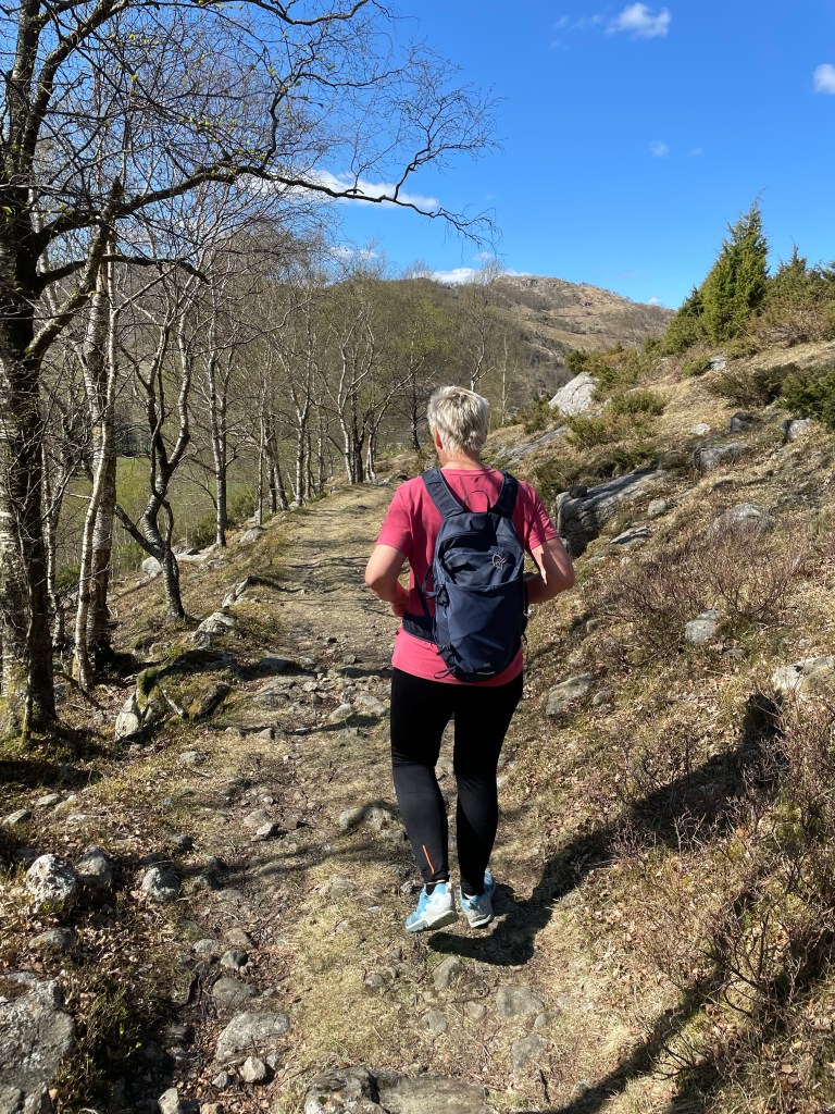 På returen gikk vi videre over fjellplatået, her er utsikten og omgivelsene flotte, så her må man huske å snu seg tilbake. Videre gikk turen ned gjennom skogen, via Brunesdalen, Til slutt kom vi innpå samme stien vi fulgte oppover. En skikkelig trivelig rundtur, som anbefales på det sterkeste!