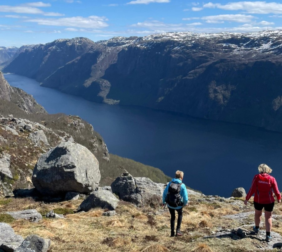 På toppen er det nærmest en dramatisk flott utsikt over Ørsdalsvatnet. Må nytes! Kartverket sier faktisk at det heter Åsmundstadfjellet ved toppunktet.