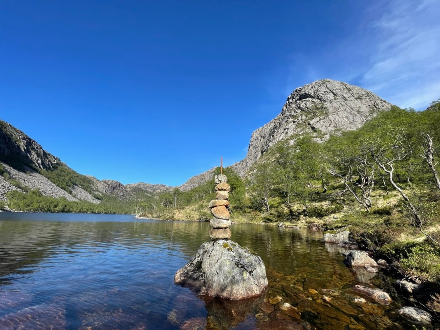 Opp langs bekken over Mjåvatn: