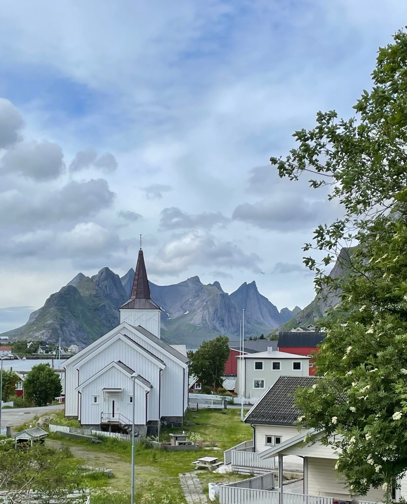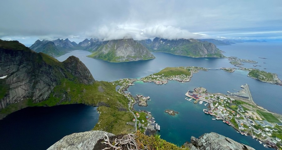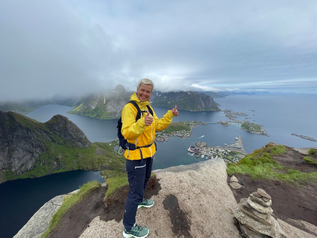 På Reinebringen fikk vi virkelig oppleve det magiske Lofoten, tåka kom/gikk raskt. Denne dagen lå tåka rundt fjelltoppene, så vi fikk en flott utsikt som må oppleves. Fjord og spisse fjell – magisk!