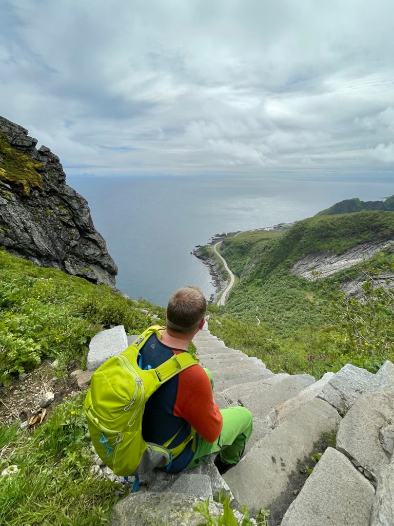 Det er flotte sherpatrapper hele veien opp, totalt ca 1700 trappetrinn. Turen er relativt bratt, men her er det såpass tilrettelagt, at høydemetrene spiste vi raskt. Ikke glem å se deg tilbake mens du går opp! Det er bygd inn mange fine stoppesteder å ta en pause på underveis.
