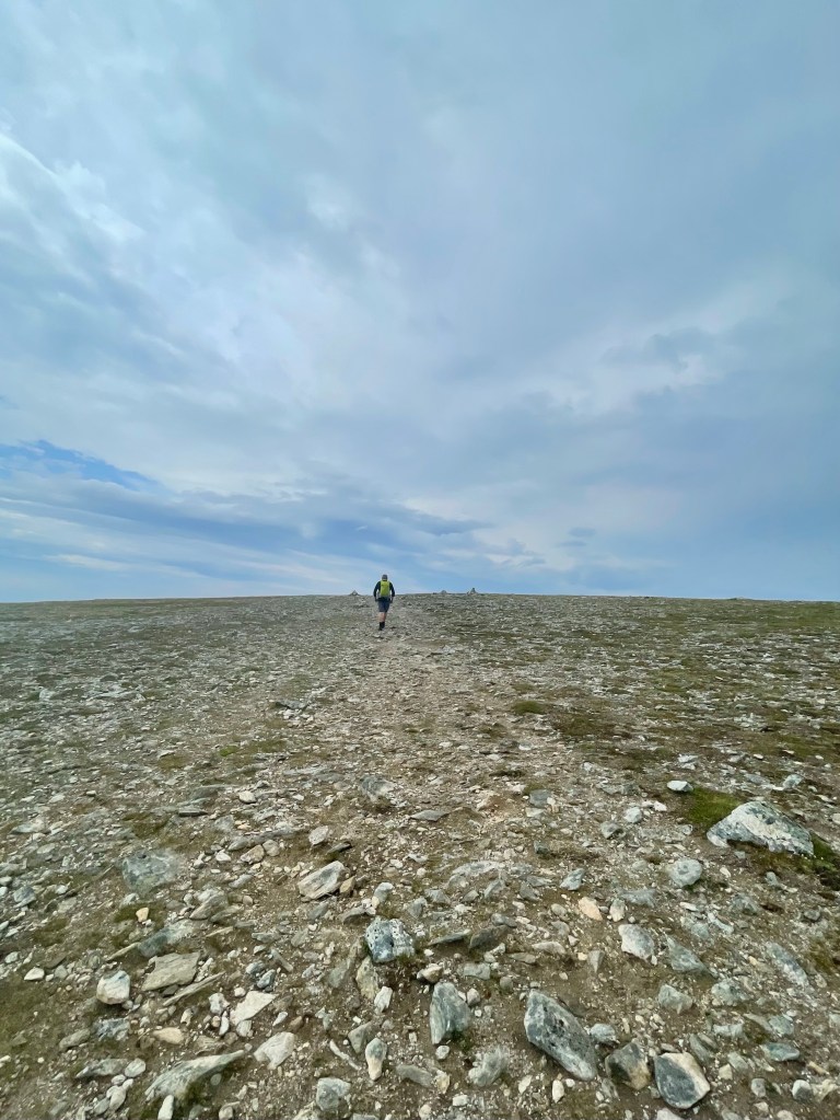 Stikryss med turstier i alle retninger. Herifra er det 1 km opp til Måtind som ses bak meg. Et godt stykke fra toppen, og allerede magisk utsikt! Bleiksøya