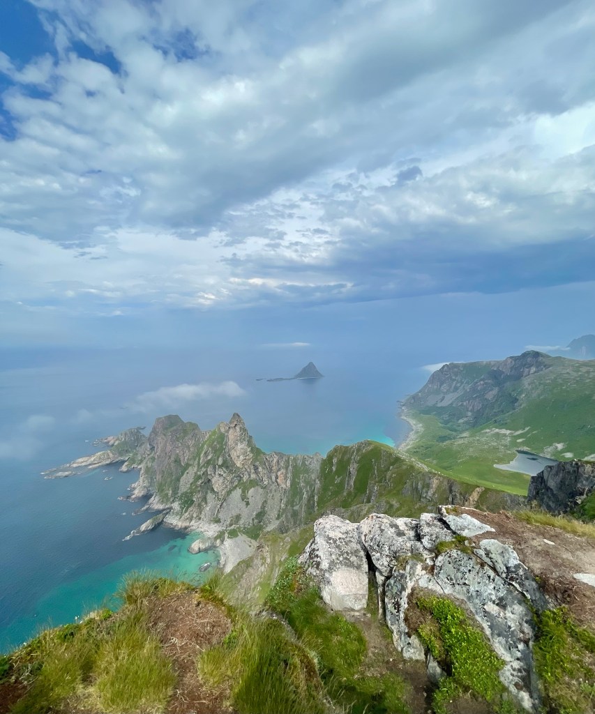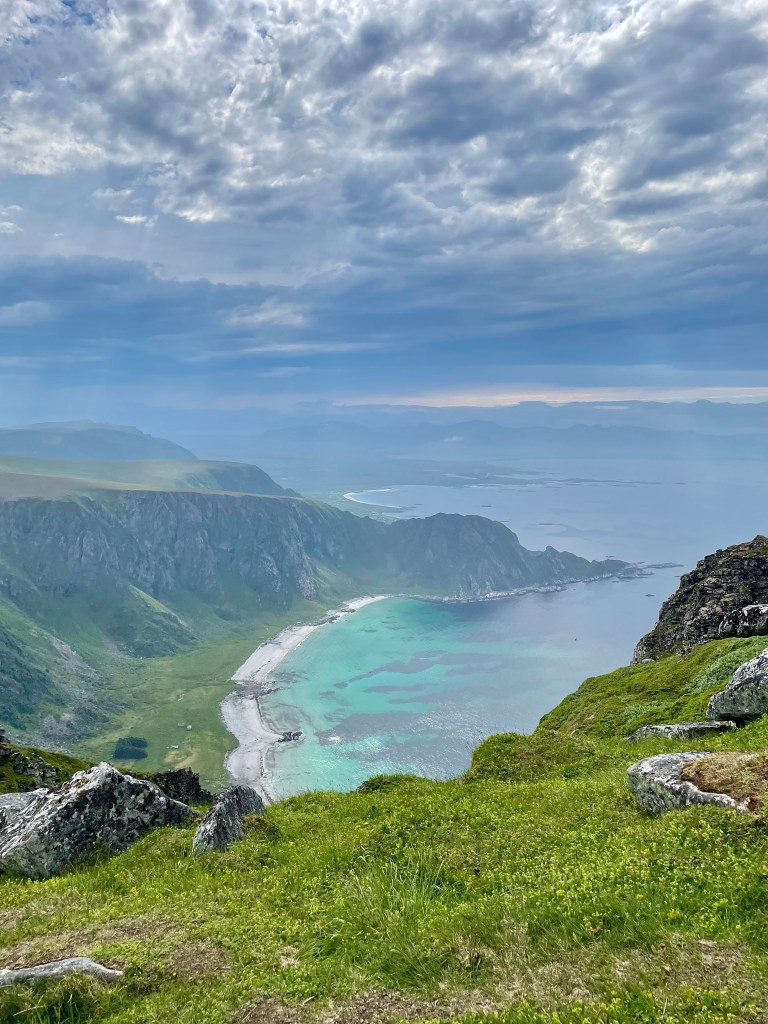 Turen er lettgått, litt bratt start, men etter det er det «strake veien». Det føltes som å vandre i et eventyr! At dette er et av Vesterålens mest besøkte fjell, er helt forståelig. Makan til magisk utsikt! 408 moh er ikke rare greiene, men likevel eksotisk og spektakulært (selv for oss nordmenn).