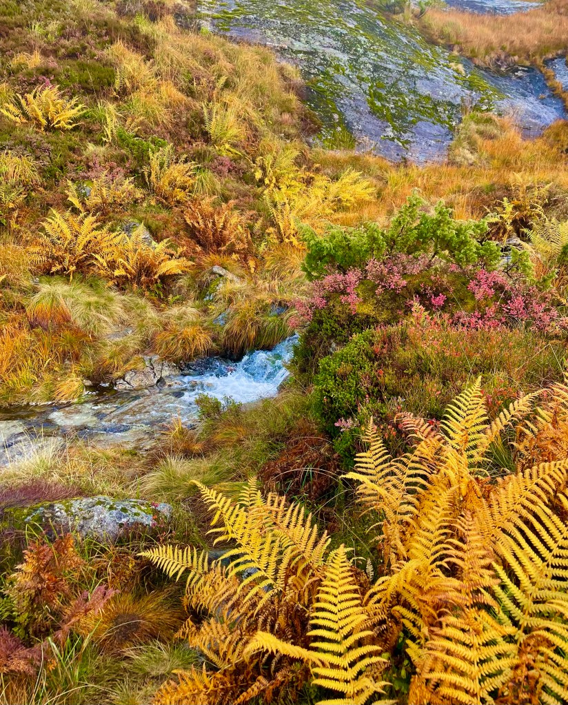 Vi parkerte ved den store parkeringsplassen i Nordstøldalen. Derifra fulgte vi skiltet mot Nystøl. Turen opp dit er fin i seg selv. Og Nystøl er en idyllisk plass – et naturlig sted å raste. Denne gamle stølen er full av sjarm. Derifra fulgte vi terrenget videre opp til Njedlaslåttnuten. Bare sikta oss inn. Vi fant ikke noe god sti opp, med unntak av første del opp fra Nystøl. Oppå her er terrenget såpass oversiktlig, at man ikke kan gå feil. Lettgått er det også. Fulgte bekken oppover.