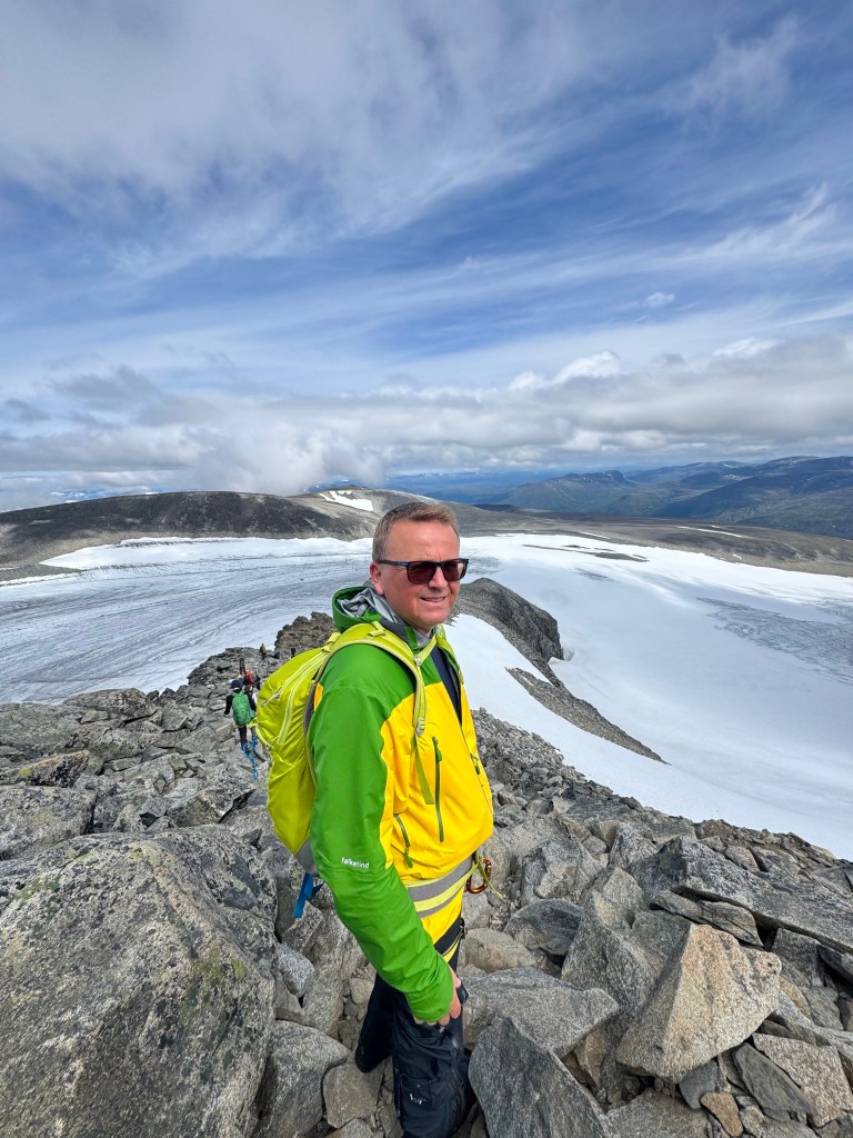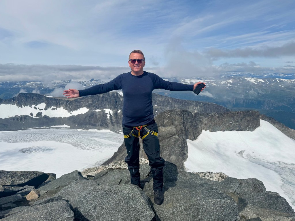Det var på tide – at jeg kom meg opp på Norges tak, 2469 moh. Ikke bare er det Norges høyeste fjelltopp, men også Nord-Europas. Ivar hadde vært her før, som 9-åring.
