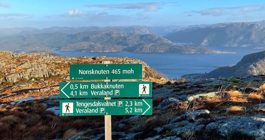 Denne fjelltoppen kan nås fra flere steder. Jeg valgte i dag å gå fra den store parkeringsplassen ved enden av Tengesdalvatnet. Her er det merka sti oppover lia. Noe bratt, men helt overkommelig. Flere flotte utkikkspunkter underveis. Oppe på fjellplatået er det flott utsikt inn mot Lysefjorden, over mot Strandalandet og Ryfylke. Denne turen anbefales, og den kan utvides til en rundtur . God skilting underveis.